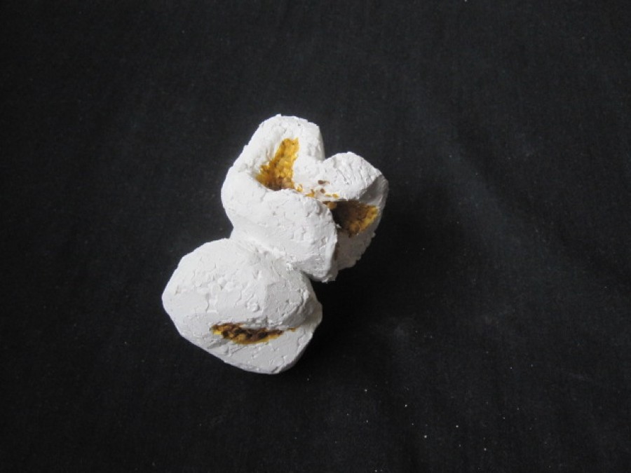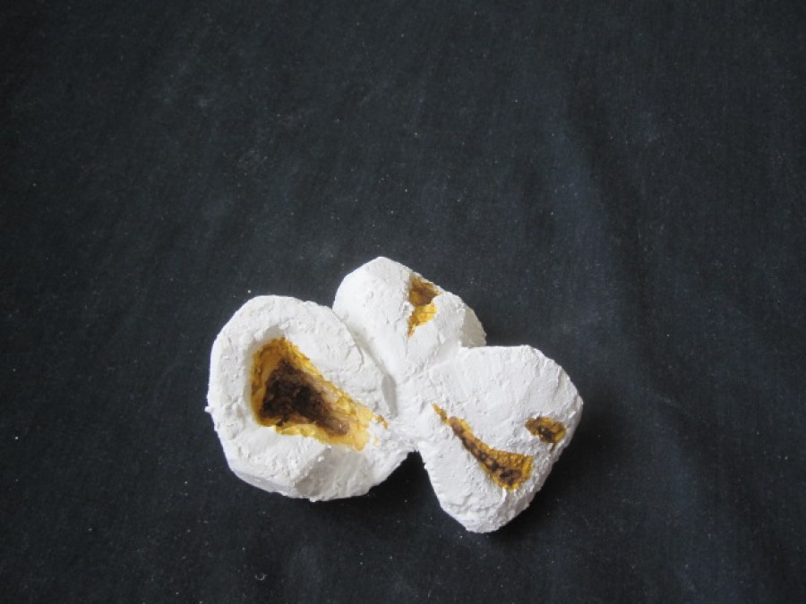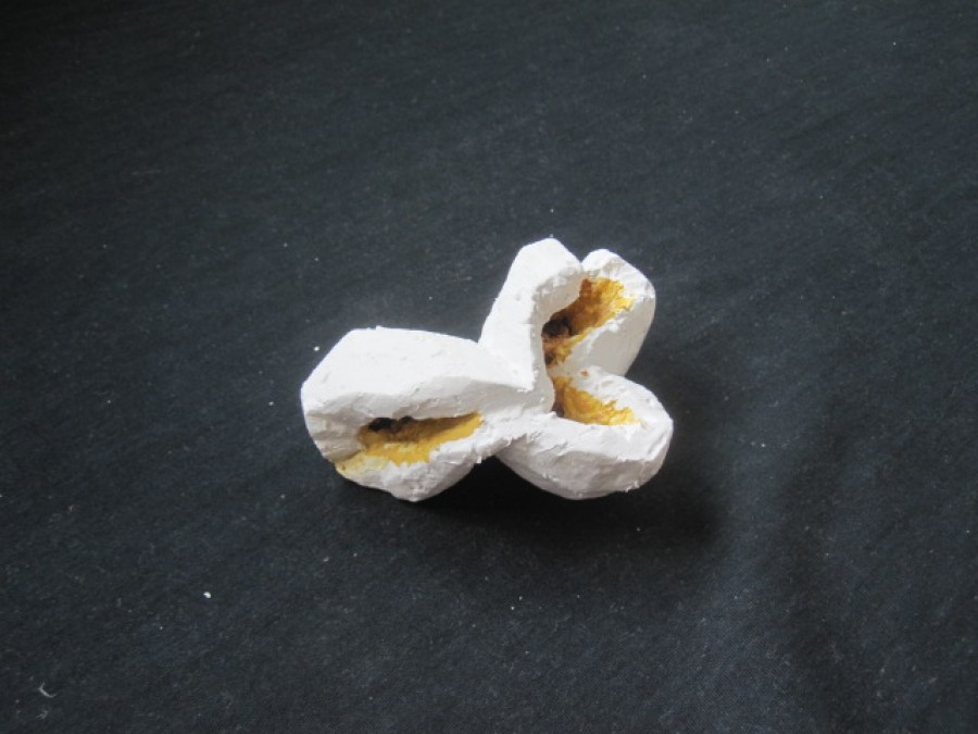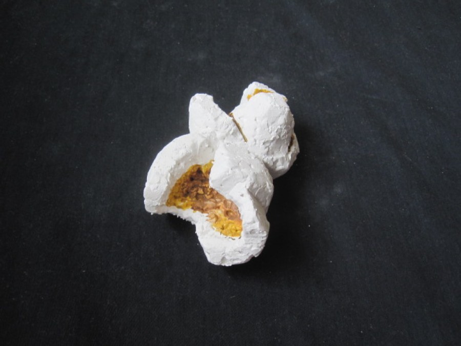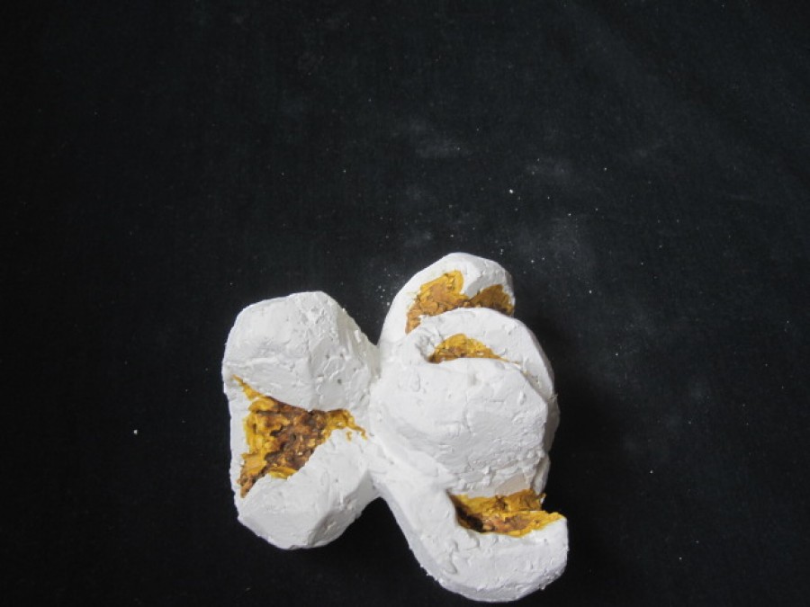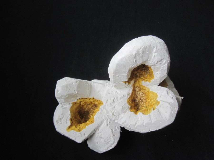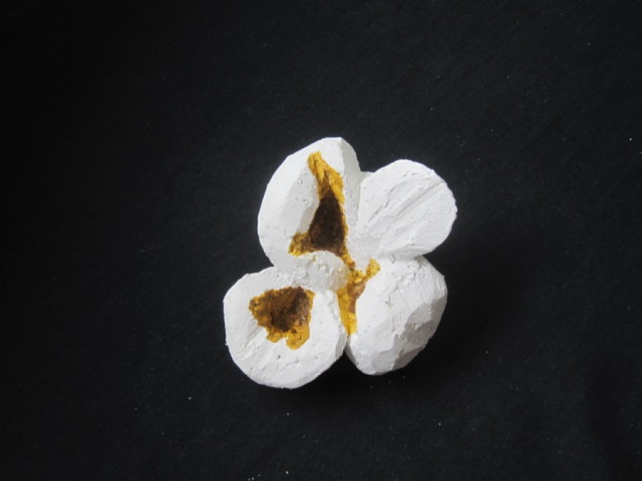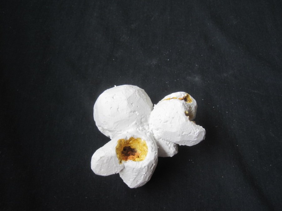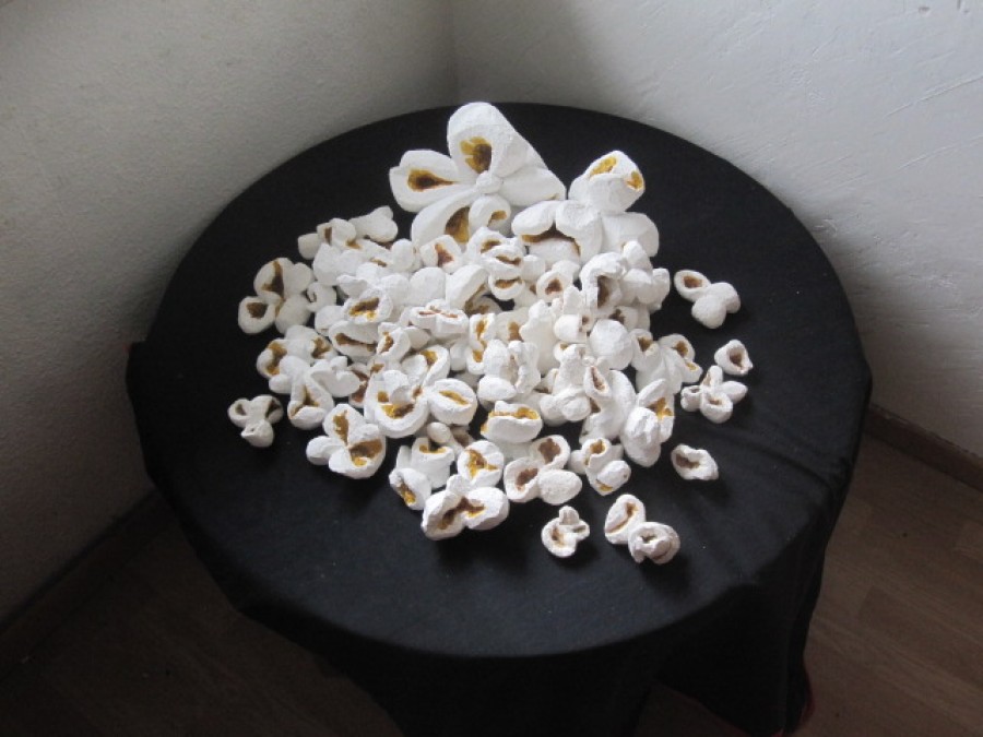gibt Siegfried Böttcher die gestalterische Freiheit aus der streng naturalistischen Vorgabe eines explodierten Maiskorns neue Formen zu finden. Dieser Vorgang der Metamorphose mit all seiner symbolischen Konnotation überträgt er inhaltlich in den skulpturalen Gestaltungsprozess und schafft es einen Bogen zwischen Realismus und Abstraktion zu vollziehen
