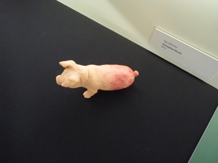 Mit der Ausstellung Nikolaus Heidelbach-WURST mit Wein, Weihnachten, Wild und Gemüse werden Skulpturen des Kasseler Zeichners und Skulpturenbauers Sigi Böttcher gezeigt, die eigens für die Ausstellung in Frankfurt gefertigt wurden.